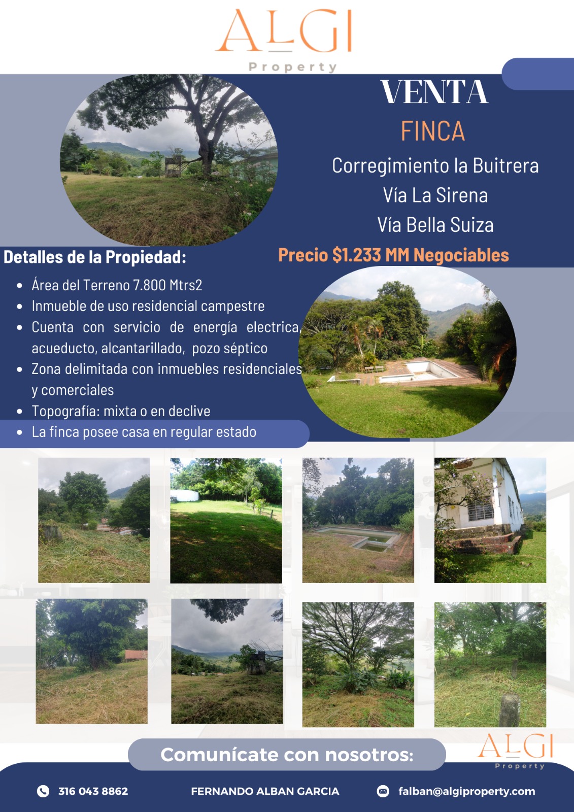 Inmueble de uso residencial campestre, cuenta con servicio de energía eléctrica, acueducto, alcantarillado, pozo séptico, zona delimitada con inmuebles residenciales y comerciales